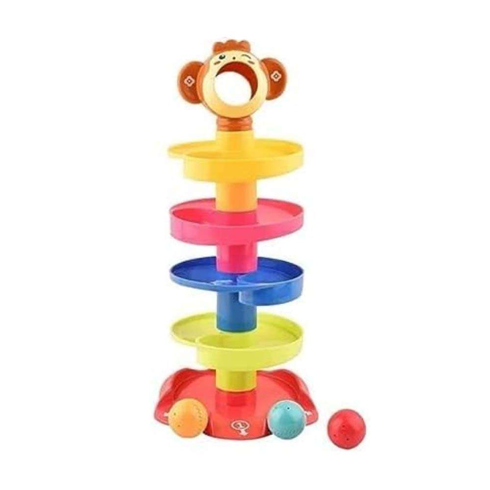 Roll Ball Toy with 5 Layer Ball Drop Tower with Roll Swirling Ramps with 3 Spinning Acrylic Activity Balls for Baby and Toddler Development Educational Development Toy Set
